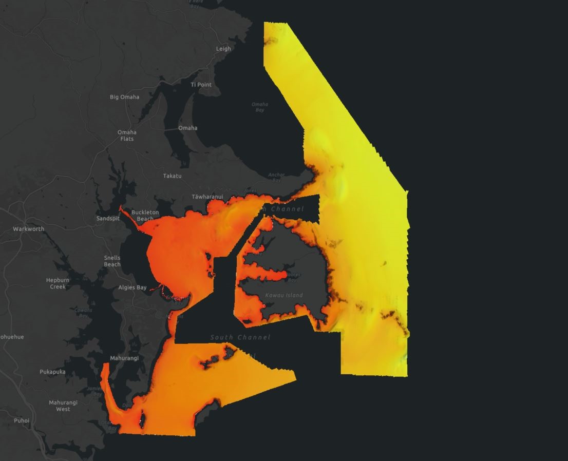 Bathymetry processed by National Institute of Water and Atmospheric Research (NIWA)